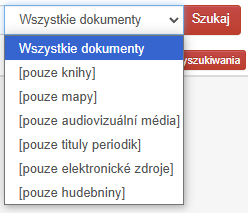 Zanim rozpoczniesz wyszukiwanie dokumentu, zalecamy jako pierwszy krok wybrać dział lub dokumenty, w których chcesz szukać (np. "tylko książki", "w dziale muzycznym" itd.).