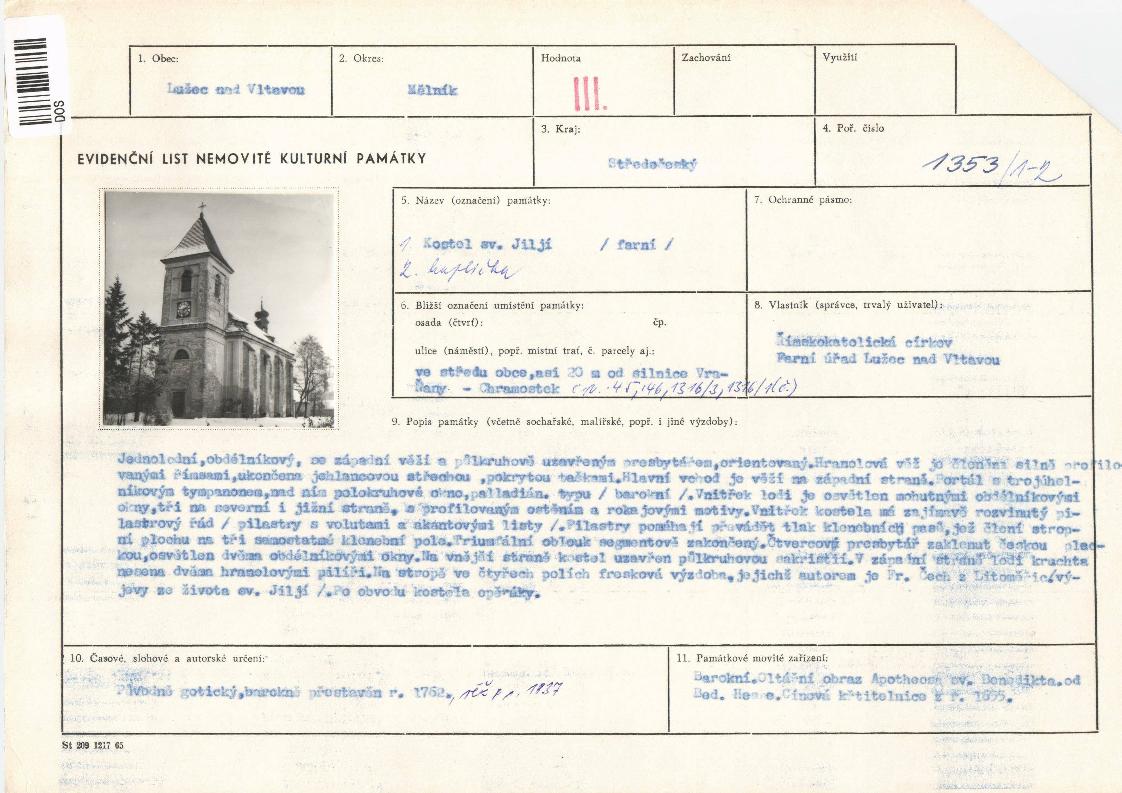 evidenční list kulturní památky |