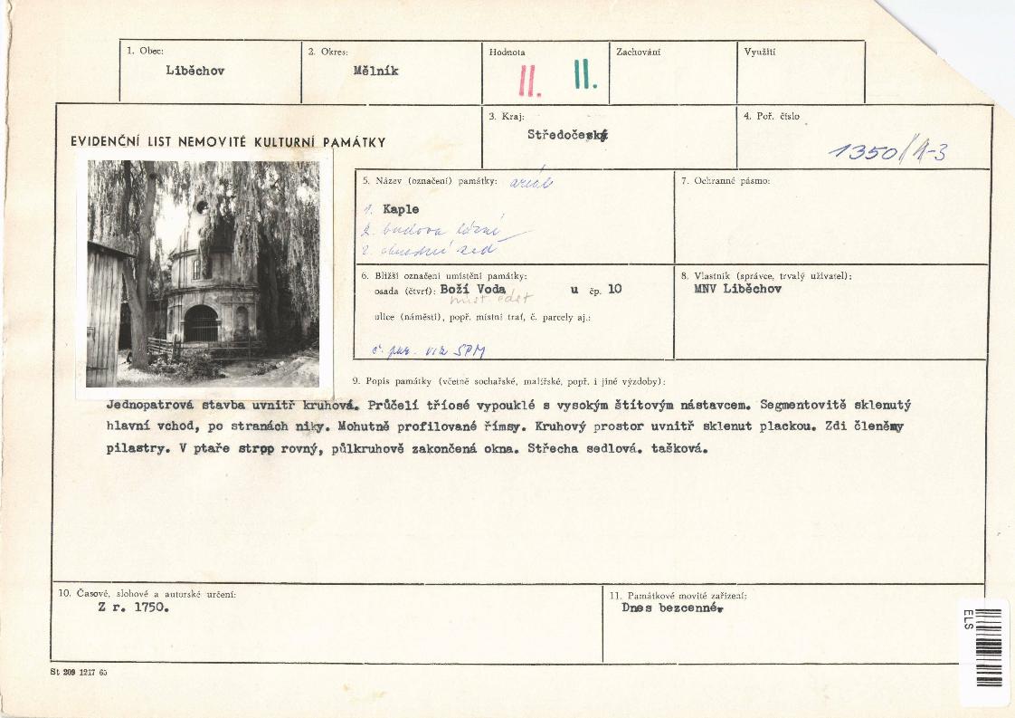 evidenční list kulturní památky |