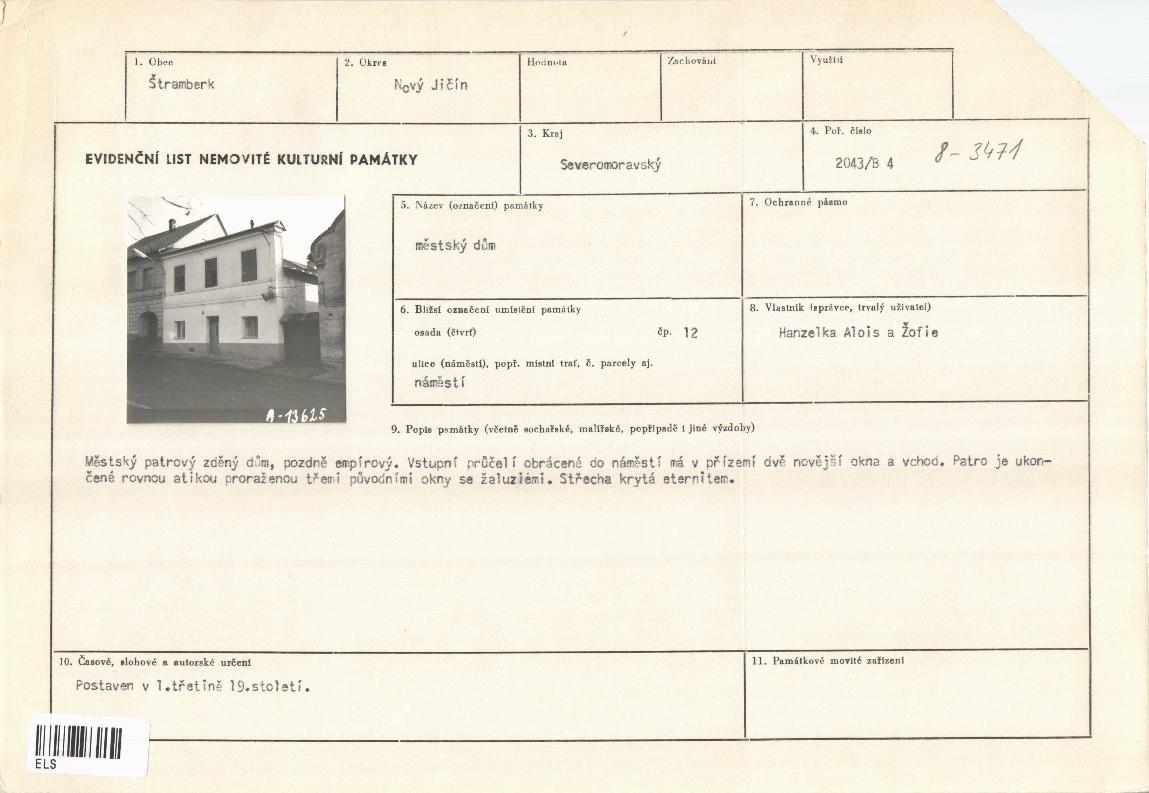 evidenční list kulturní památky |