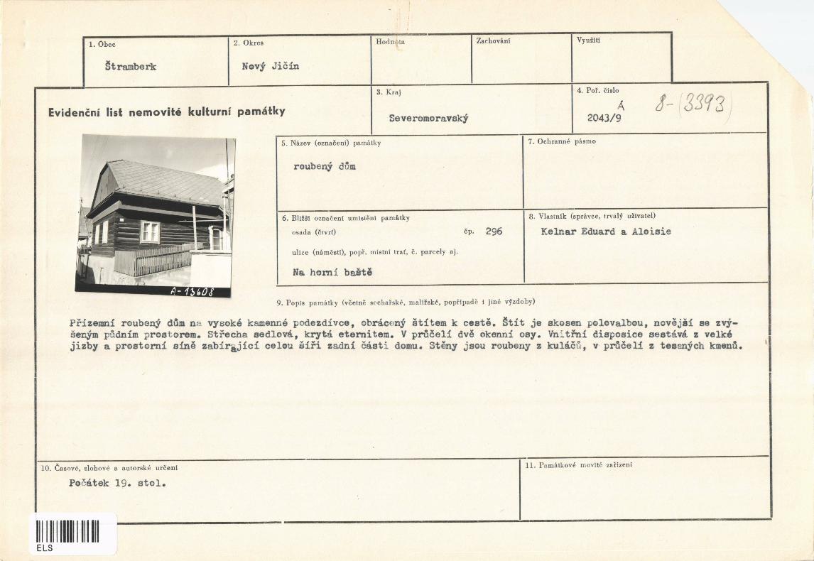 evidenční list kulturní památky |