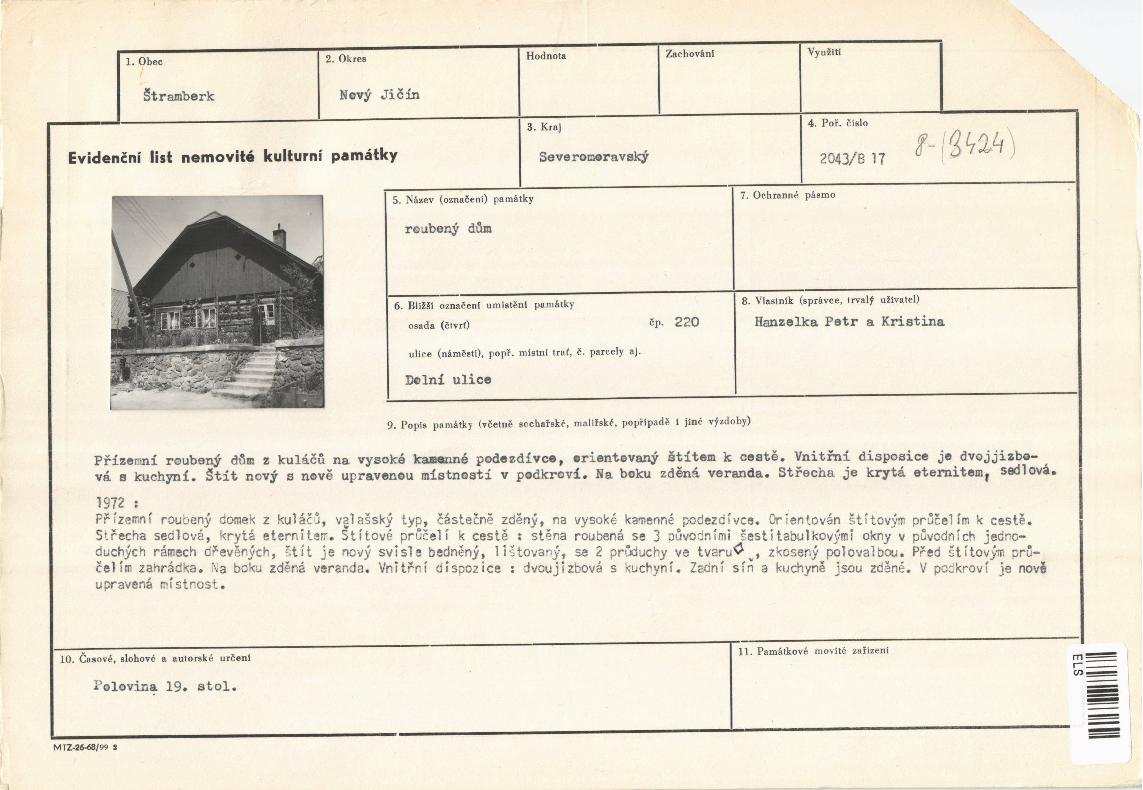 evidenční list kulturní památky |