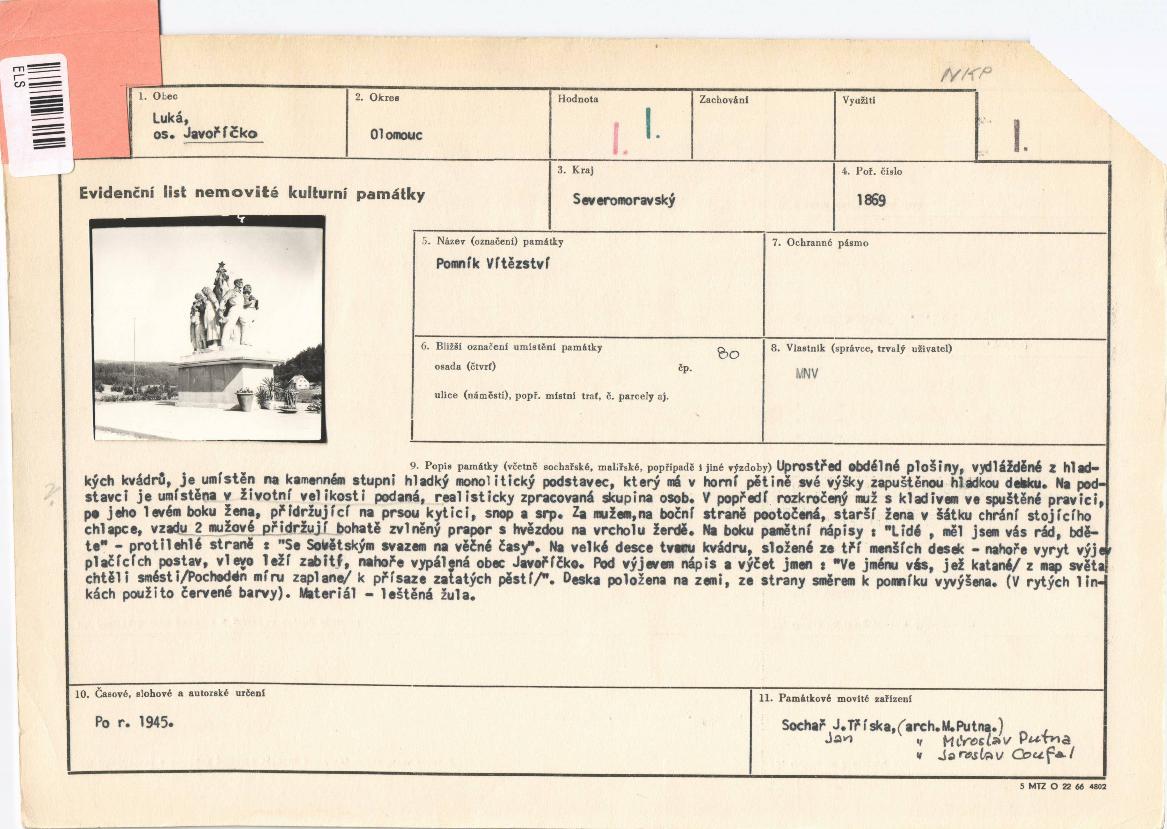 | Uživ. klíčová slova: | evidenční list KP; dokument ÚSKP; | ||||||||||