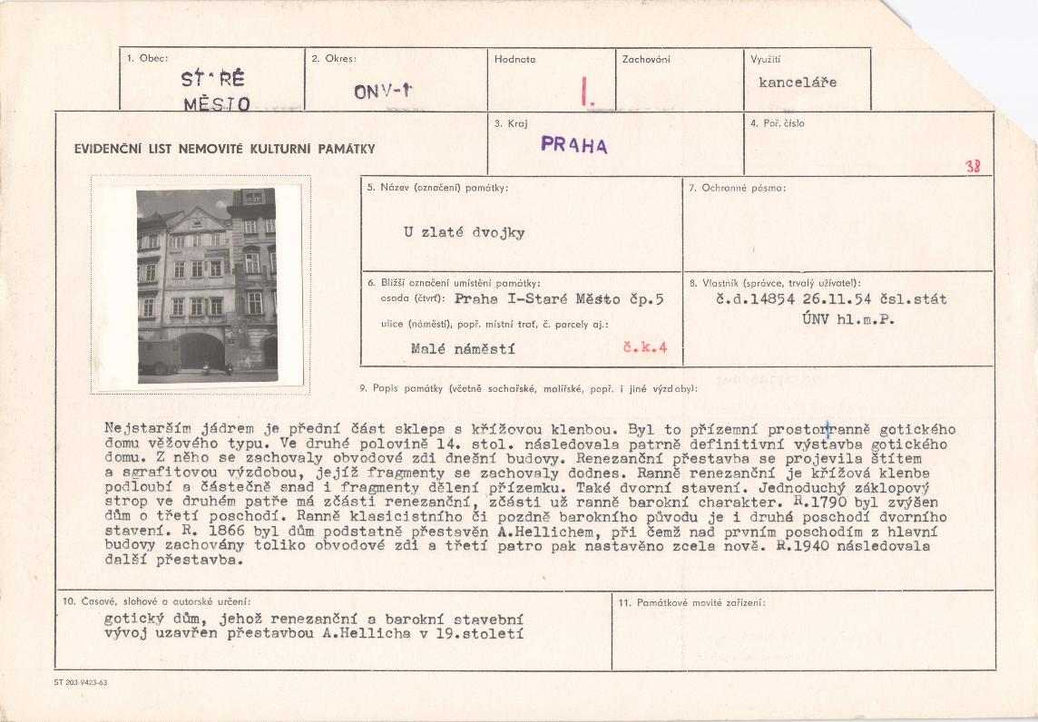 evidenční list kulturní památky |