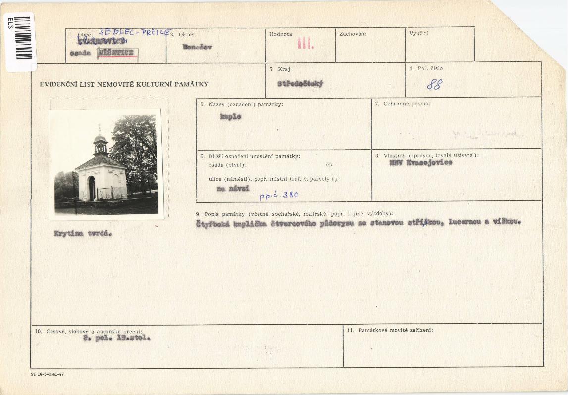evidenční list kulturní památky |