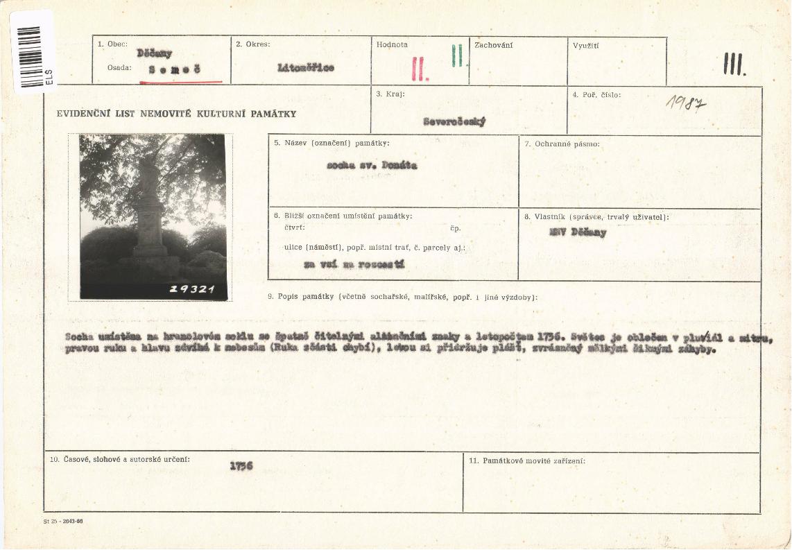 evidenční list kulturní památky |