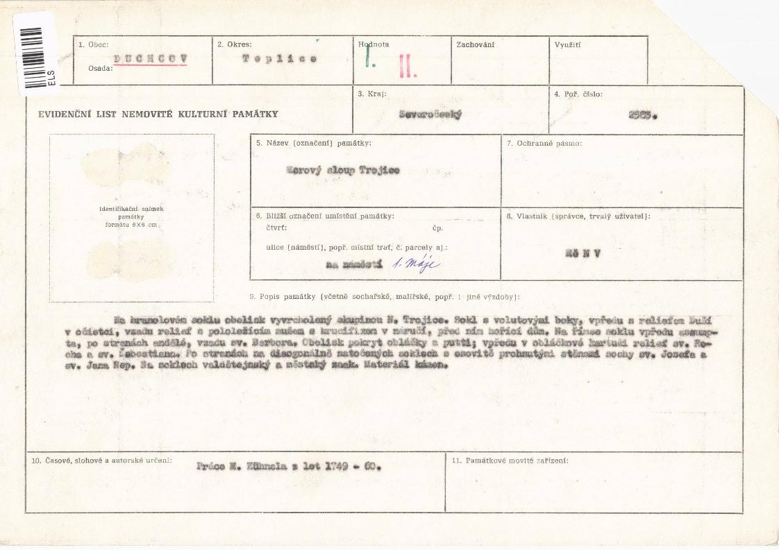 evidenční list kulturní památky |