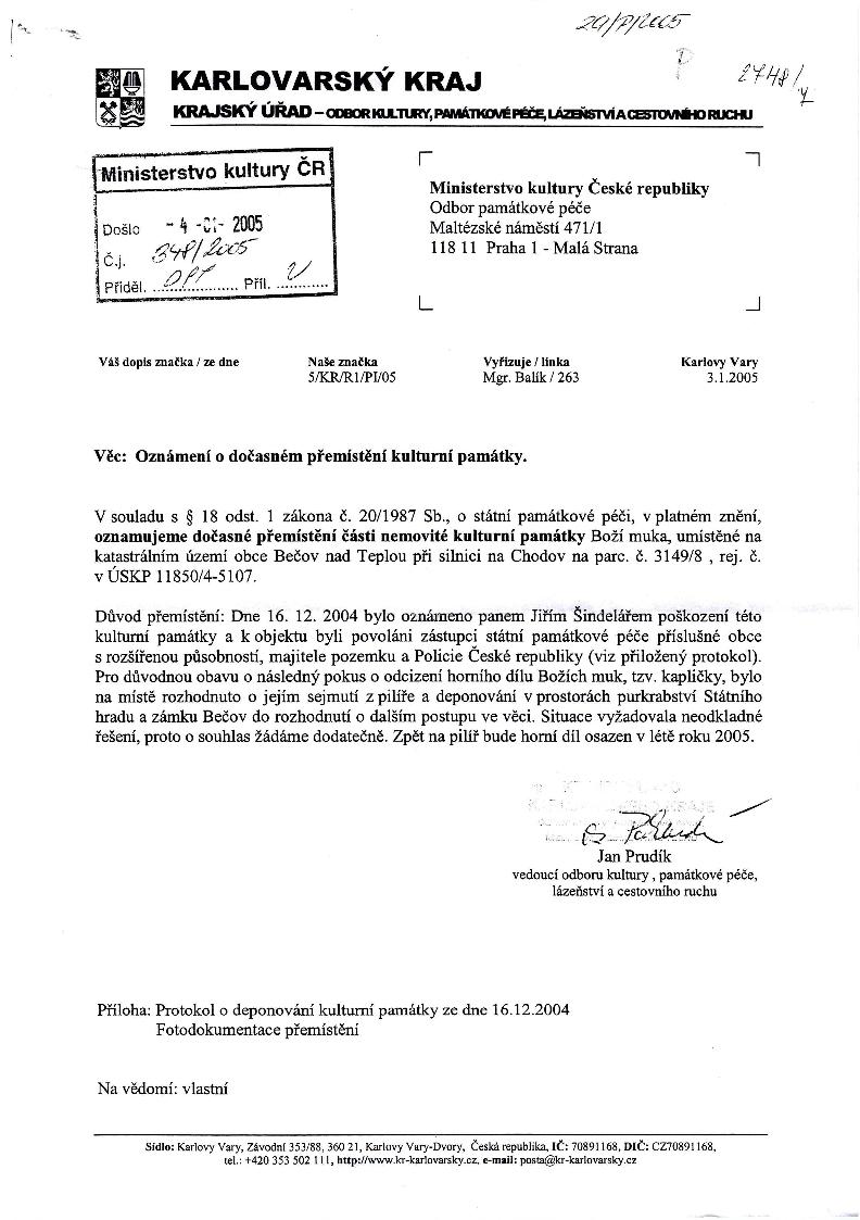 | Přír. bod: 35435 | Název objektu: boží muka | Část obce: Bečov nad Teplou | Č. dom.: | Ulice: | Č. or.: | Kat. území: Bečov nad Teplou | Obec: Bečov nad Teplou | ORP: Karlovy Vary | Okres: Karlovy Vary |