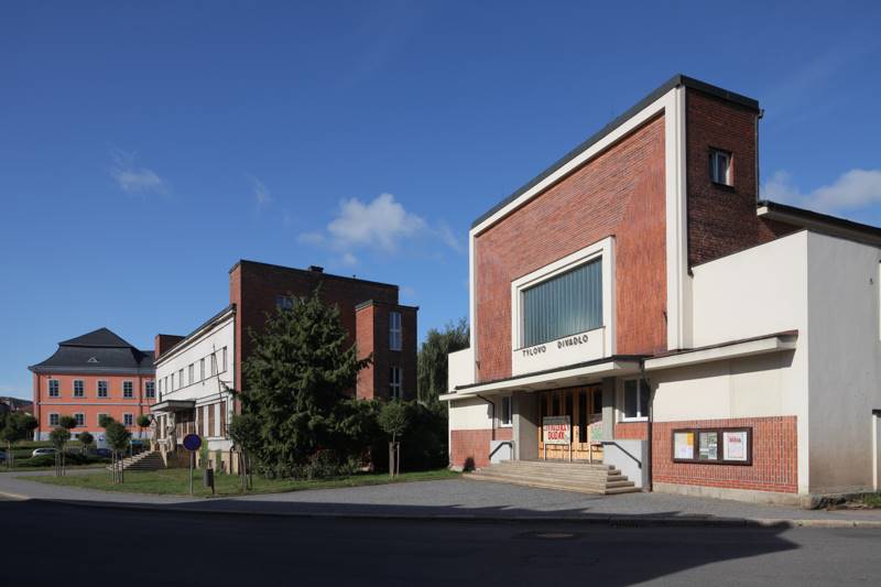 Lomnice nad Popelkou, ul. plk. Truhláře, Tylovo divadlo č.p. 2 a č.p. 7, pohled od SV
