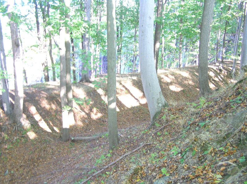 zřícenima hradu Roimund: příkop se zdvojeným valem