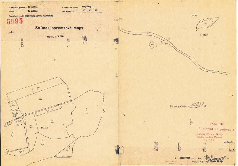 snímek (výřez, kopie) pozemkové (katastrální) mapy, mapy EN |