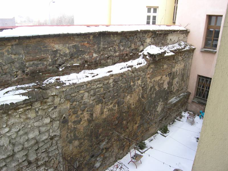 hlavní městská hradební zeď ve dvoře čp. 51, 52, 339 a 54, Veleslavínova ul.