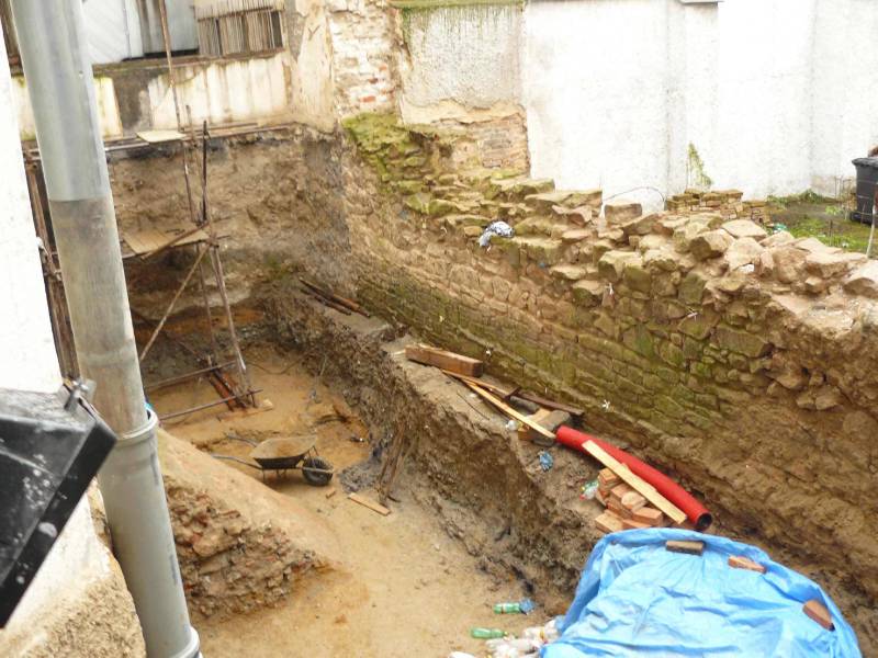 hlavní městská hradební zeď ve dvoře čp. 329, Kopeckého sady