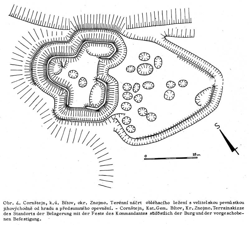 tábořiště obléhatelů s velitelskou pevnůstkou
