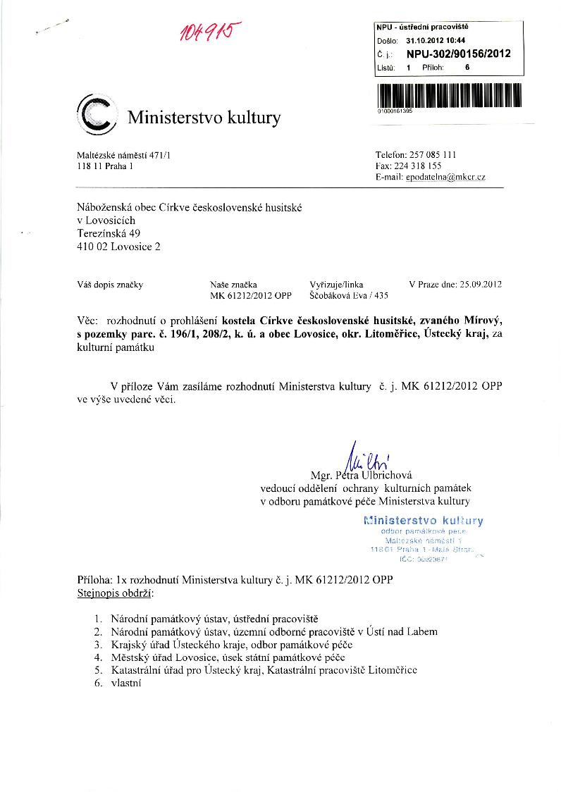 | Přír. bod: 87975 | Název objektu: kostel Církve československé husitské, zv. Mírový | Část obce: Lovosice | Č. dom.: | Ulice: | Č. or.: | Kat. území: Lovosice | Obec: Lovosice | ORP: Lovosice | Okres: Litoměřice |