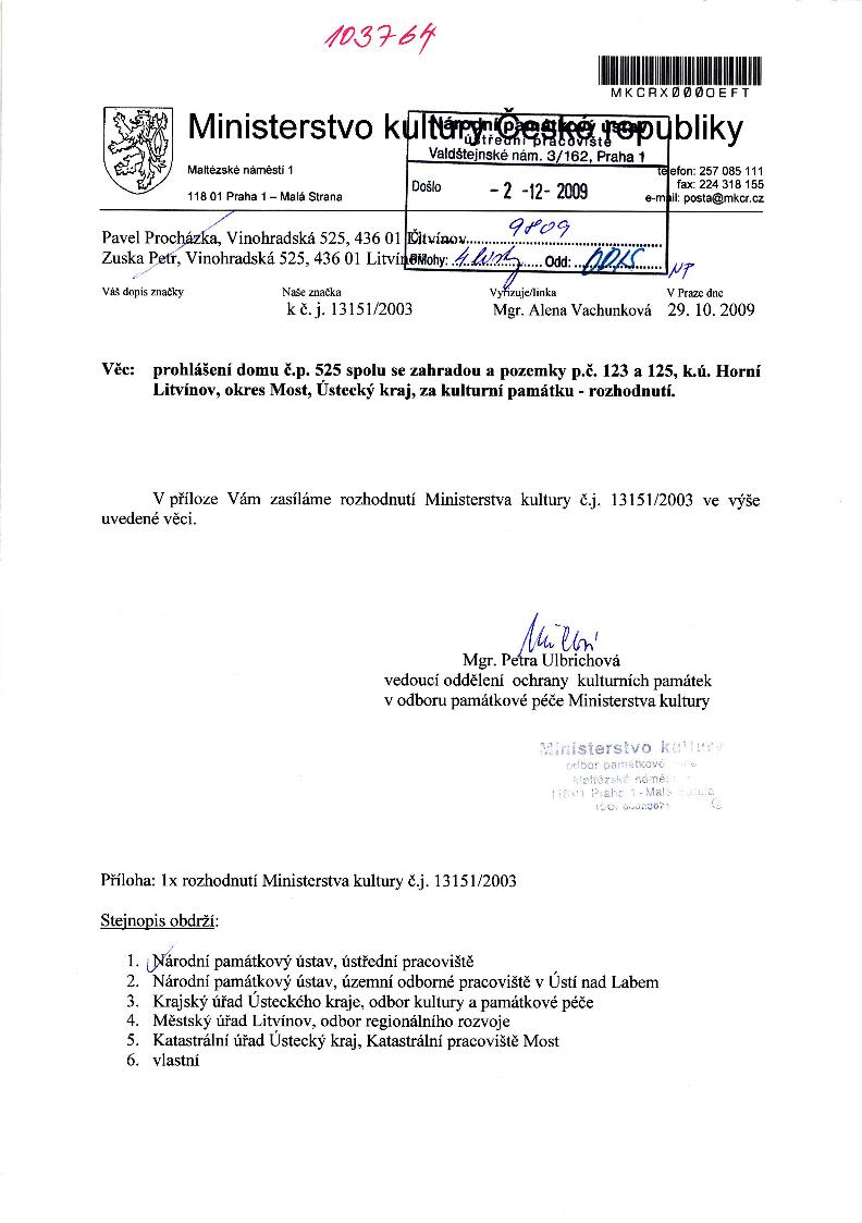 | Def. bod: 1335372 | Název objektu: | Část obce: Horní Litvínov | Č. dom.: č.p. 525 | Ulice: Vinohradská | Č. or.: | Kat. území: Horní Litvínov | Obec: Litvínov | ORP: Litvínov | Okres: Most |