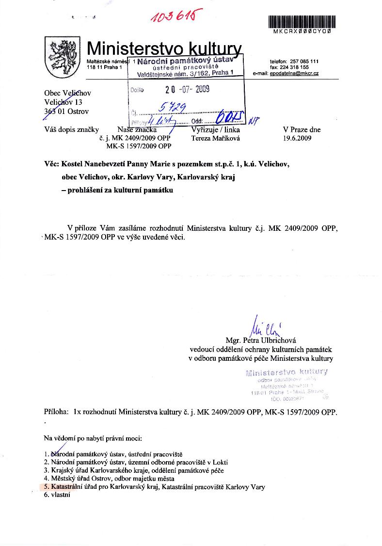 | Přír. bod: 34426 | Název objektu: kostel Nanebevzetí Panny Marie | Část obce: Velichov | Č. dom.: | Ulice: | Č. or.: | Kat. území: Velichov | Obec: Velichov | ORP: Ostrov | Okres: Karlovy Vary |