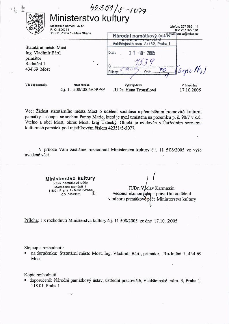 | Přír. bod: 29434 | Název objektu: sloup Panny Marie | Část obce: Most | Č. dom.: | Ulice: | Č. or.: | Kat. území: Most II | Obec: Most | ORP: Most | Okres: Most |