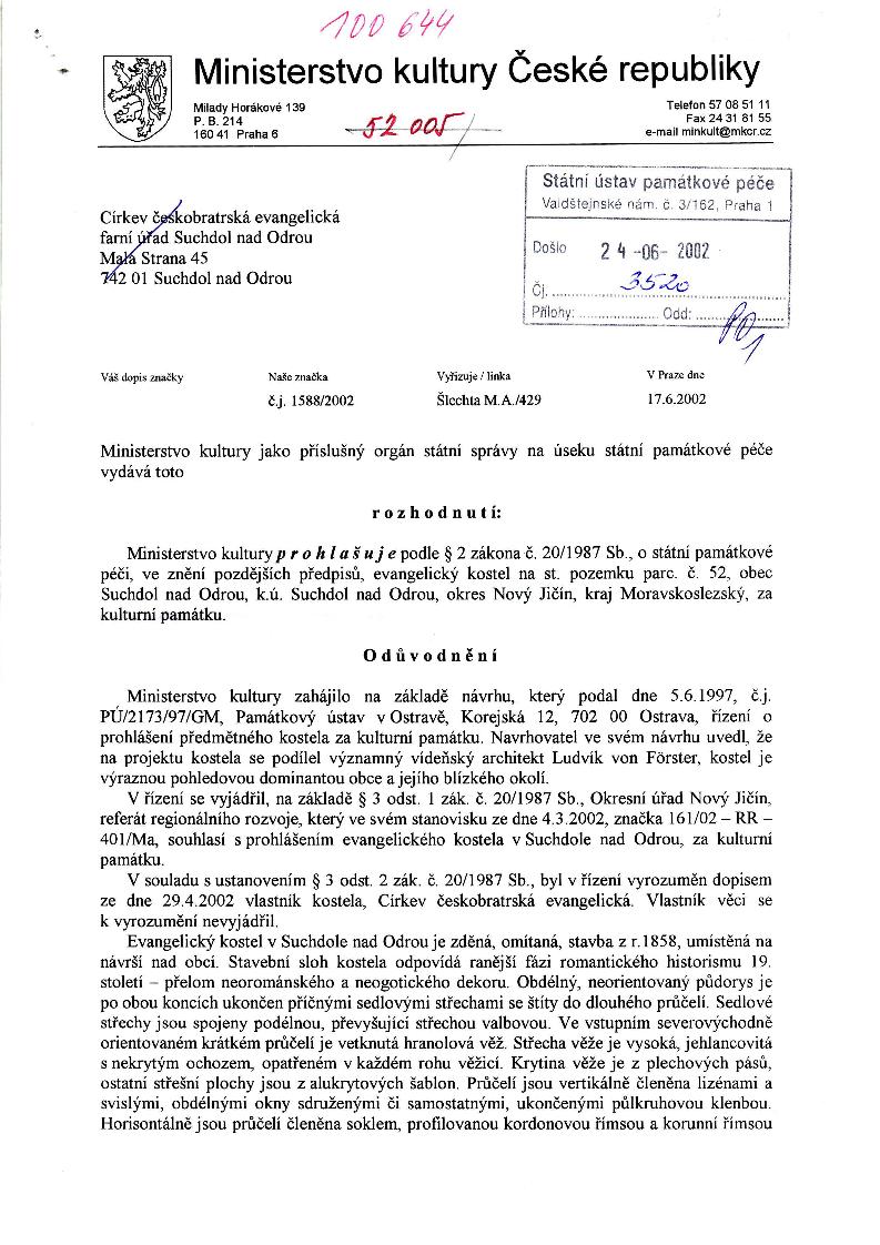 | Přír. bod: 978 | Název objektu: kostel evangelický | Část obce: Suchdol nad Odrou | Č. dom.: | Ulice: | Č. or.: | Kat. území: Suchdol nad Odrou | Obec: Suchdol nad Odrou | ORP: Nový Jičín | Okres: Nový Jičín |