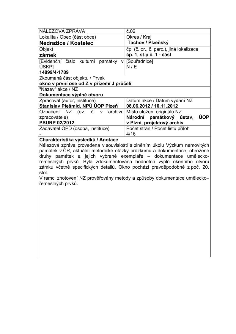 | Uživ. klíčová slova: | okno; budova zámku; nálezová zpráva; | ||||||||||