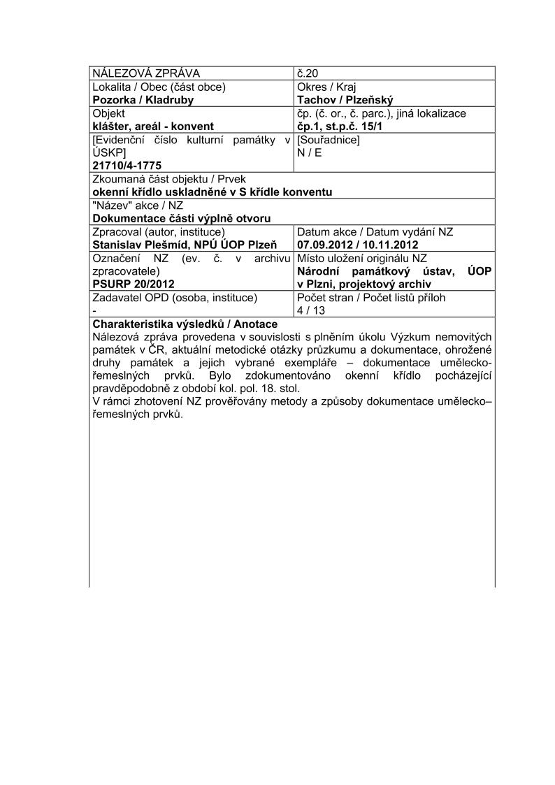 | Uživ. klíčová slova: | baroko; okno; objekt ve správě NPÚ; nálezová zpráva; konvent; | ||||||||||