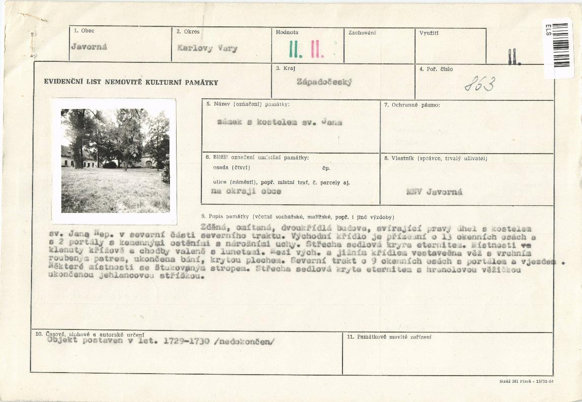 | Kód CZ: 57522 | Název lokality: Javorenský Zámek | Reálný typ: víska torzální | Kat. území: Javorná u Toužimi | Obec: Bochov | ORP: Karlovy Vary | Okres: Karlovy Vary | Kraj: Karlovarský kraj | ||