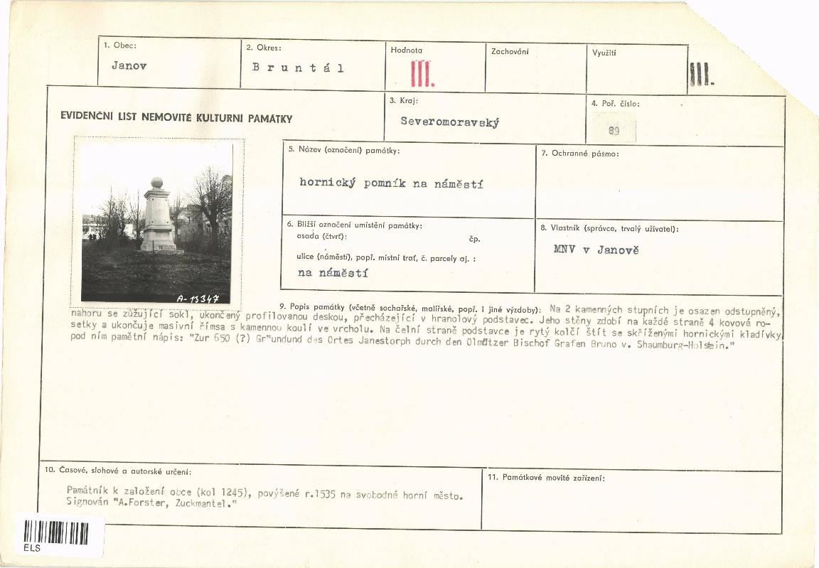 evidenční list kulturní památky |