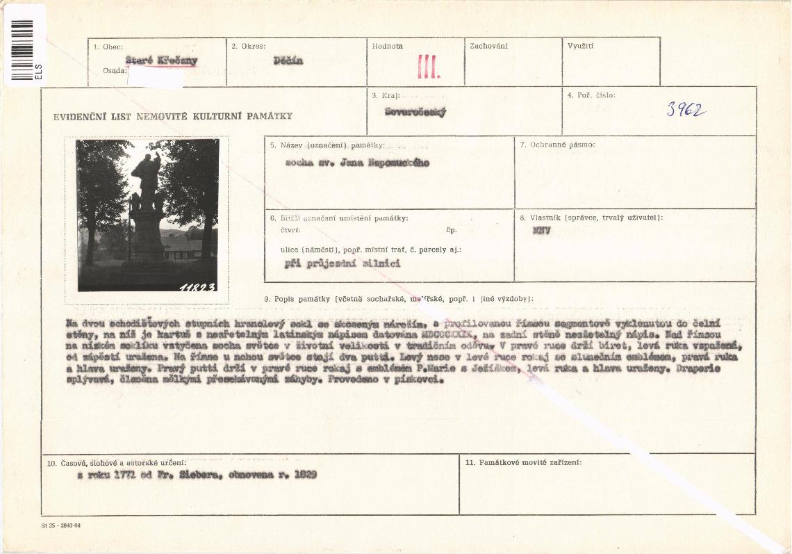 evidenční list kulturní památky |