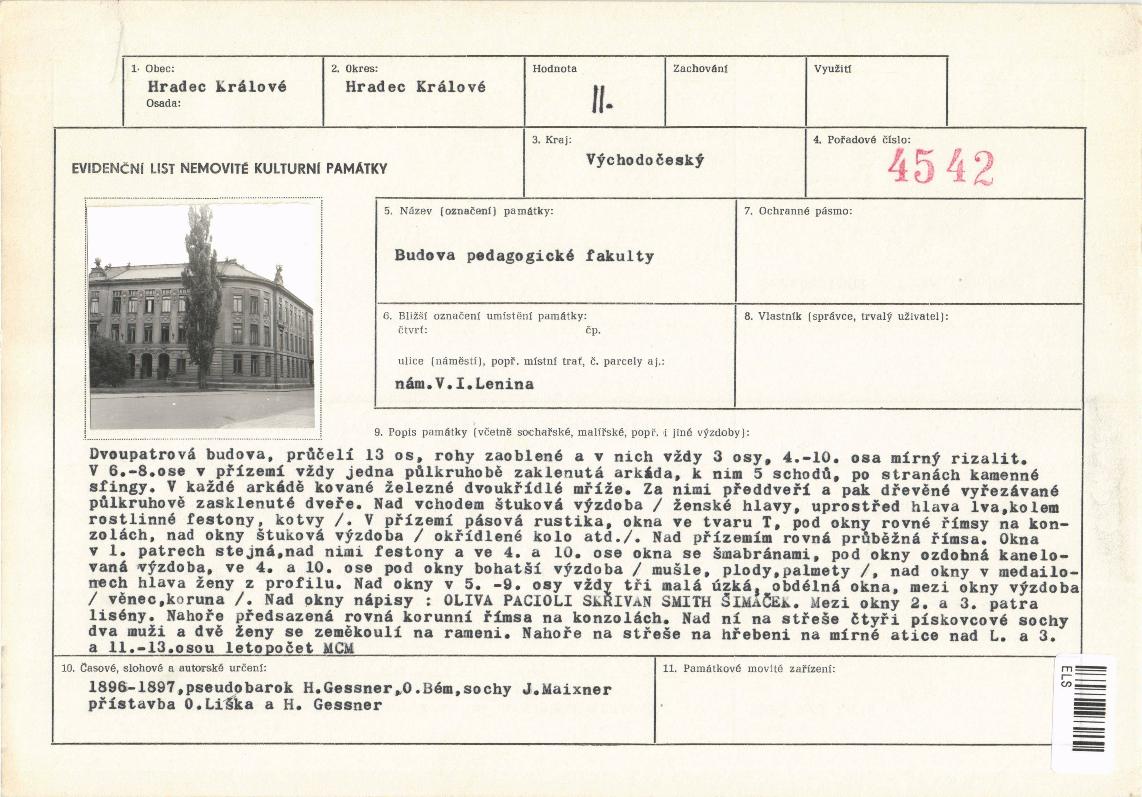 | Def. bod: 1942021 | Název objektu: Obchodní akademie | Část obce: Hradec Králové | Č. dom.: č.p. 301 | Ulice: náměstí Svobody | Č. or.: 1 | Kat. území: Hradec Králové | Obec: Hradec Králové | ORP: Hradec Králové | Okres: Hradec Králové |
