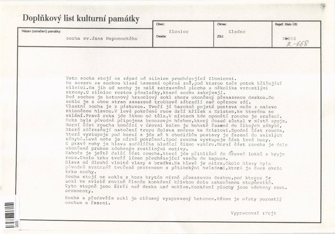 evidenční list kulturní památky |