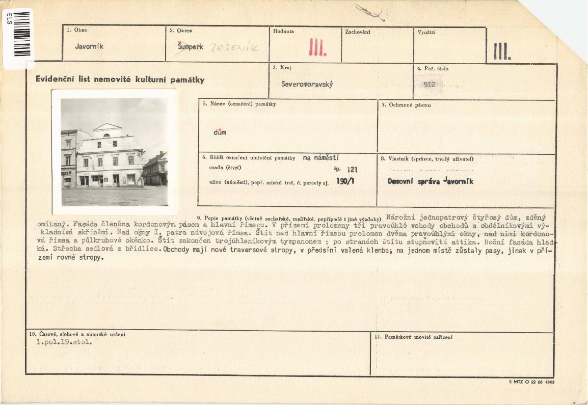 evidenční list kulturní památky |