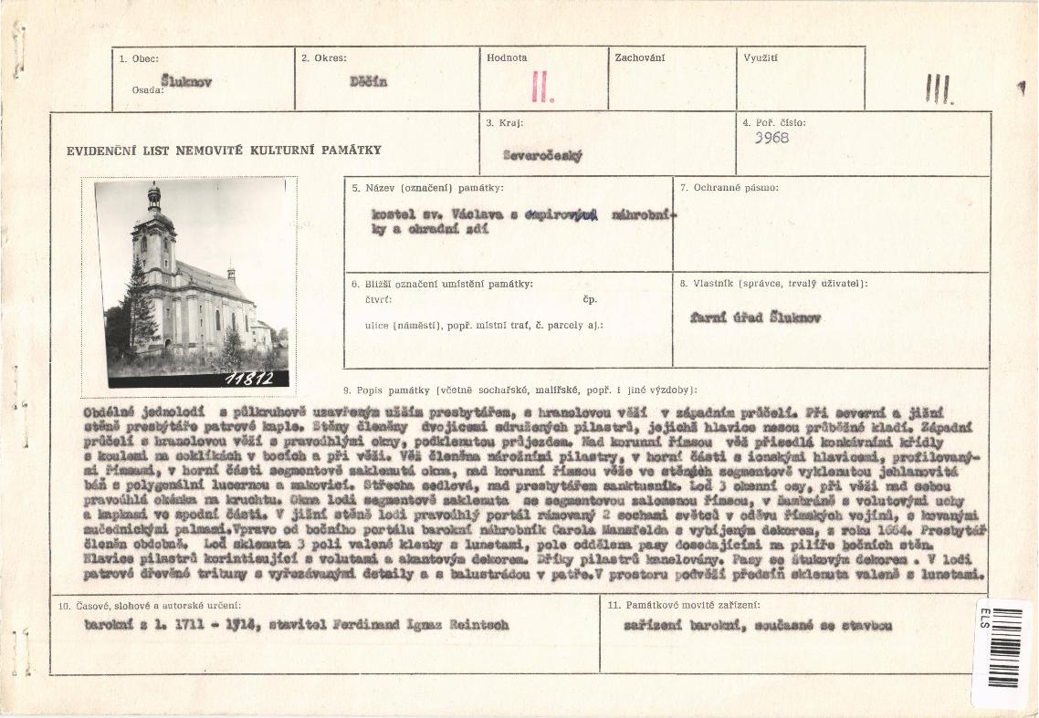 | Def. bod: 2551437 | Název objektu: kostel sv. Václava | Část obce: Šluknov | Č. dom.: | Ulice: | Č. or.: | Kat. území: Šluknov | Obec: Šluknov | ORP: Rumburk | Okres: Děčín |