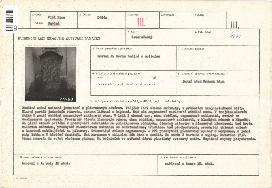 evidenční list kulturní památky |