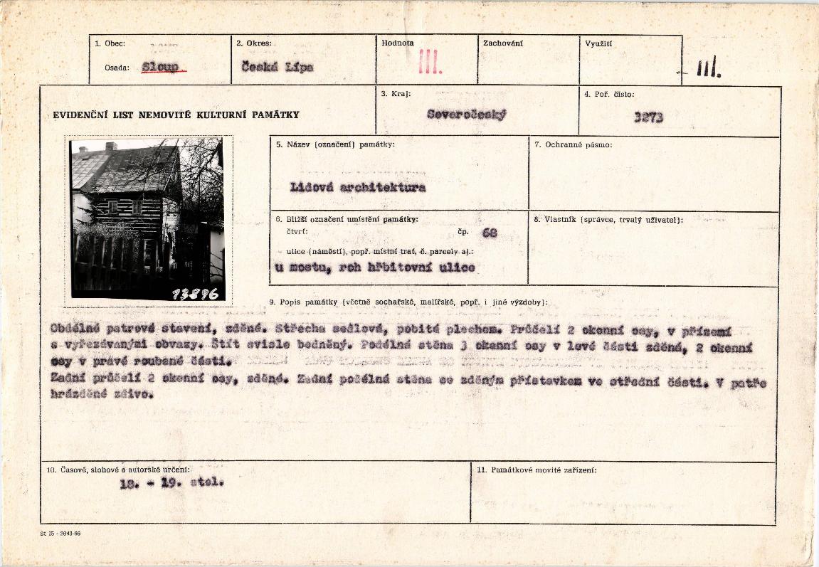 evidenční list kulturní památky |