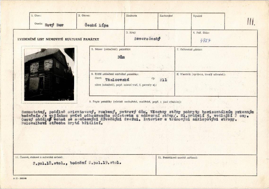 evidenční list kulturní památky |
