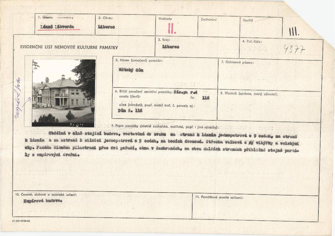 evidenční list kulturní památky |