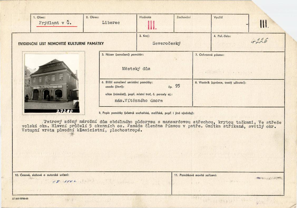 evidenční list kulturní památky |