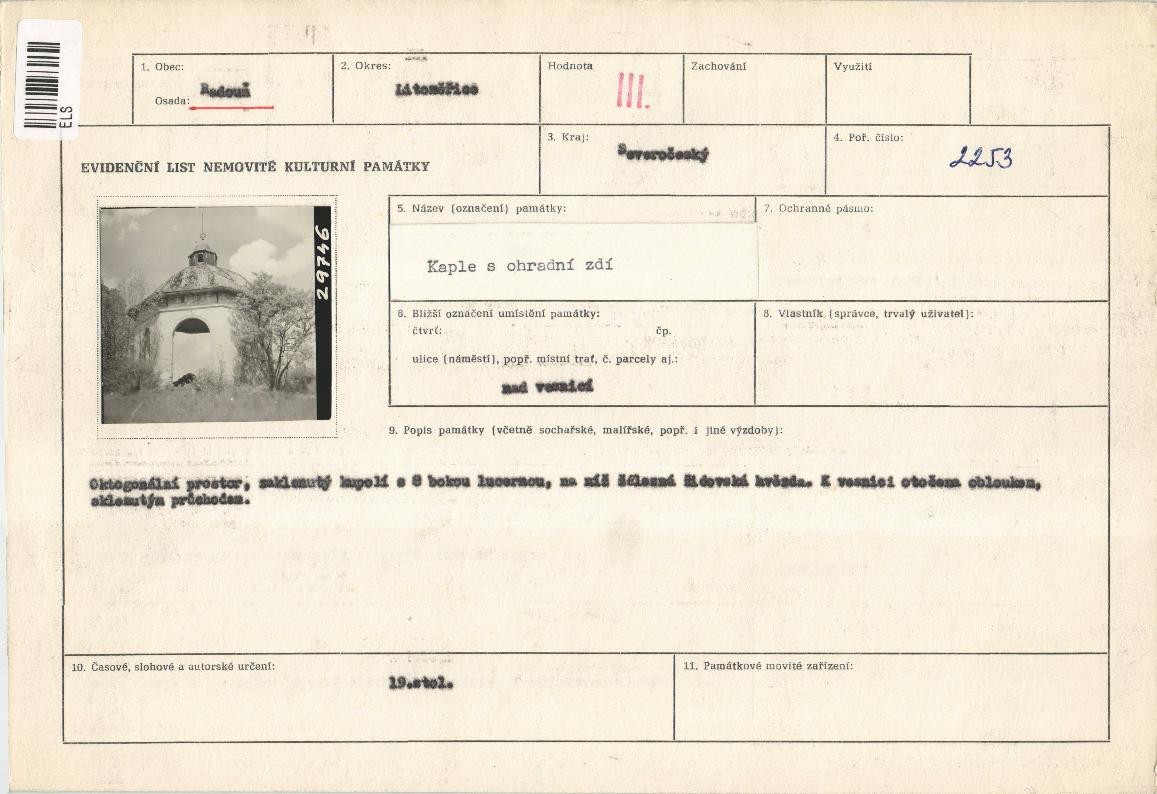 evidenční list kulturní památky |