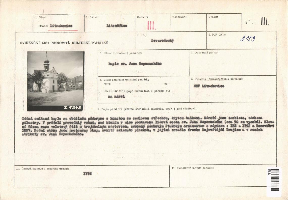evidenční list kulturní památky |