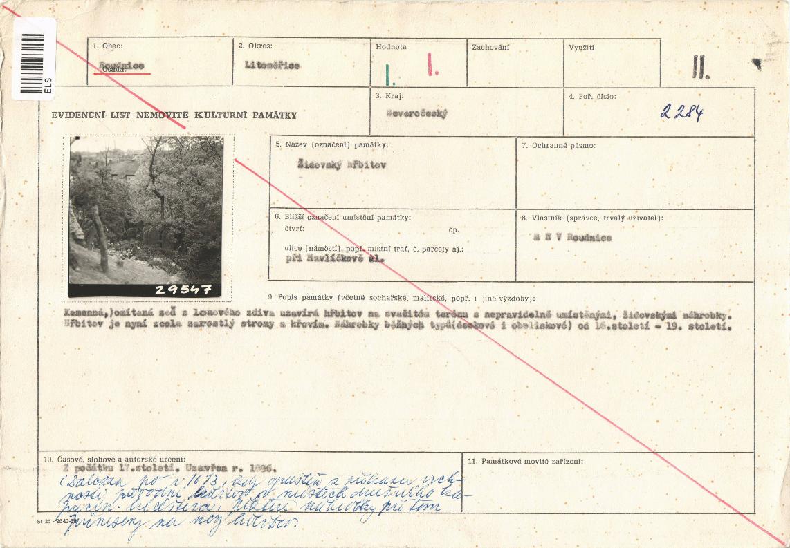 evidenční list kulturní památky |