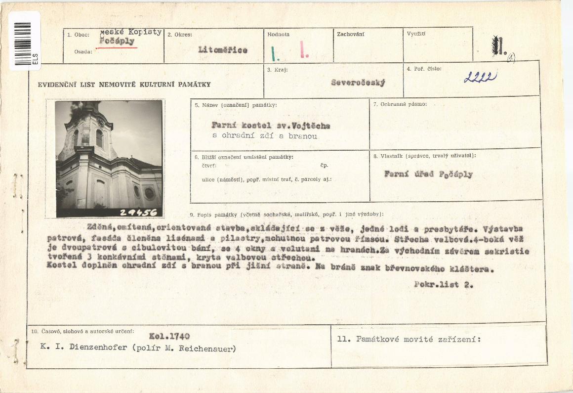 | Přír. bod: 23914 | Název objektu: kostel | Část obce: Počaply | Č. dom.: | Ulice: | Č. or.: | Kat. území: Počaply u Terezína | Obec: Terezín | ORP: Litoměřice | Okres: Litoměřice |