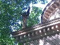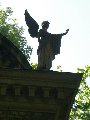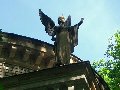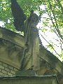 Liteň, pohřební kaple s hrobkou rodu Daubků, detail korunní římsy se sochou anděla na nároží kaple