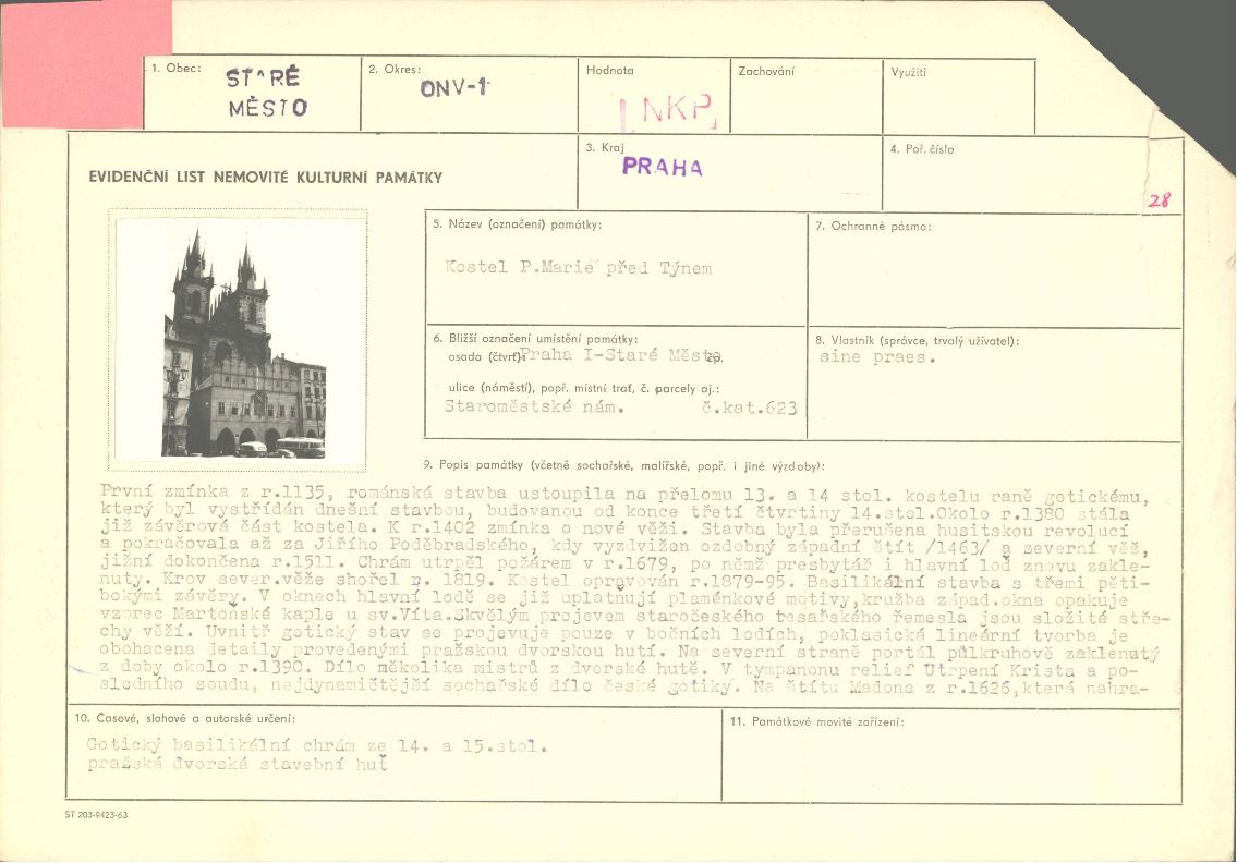 evidenční list kulturní památky |