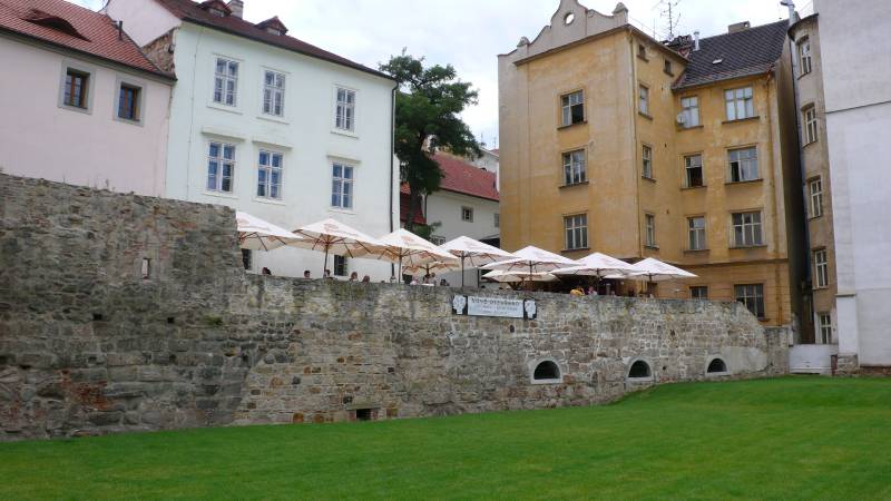 hlavní hradební a parkánová zeď, Křižíkovy sady (za čp. 103, Dřevěná ul. a za čp. 106 a 360, nám. Rep.)