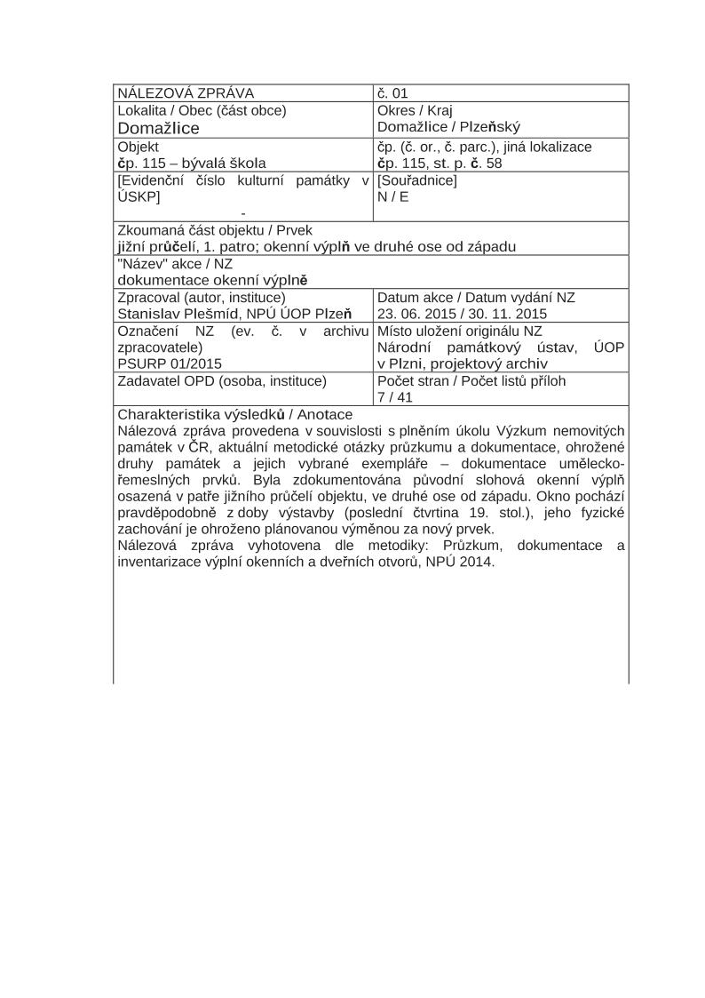 | Uživ. klíčová slova: | okno; nálezová zpráva; městský dům; | ||||||||||